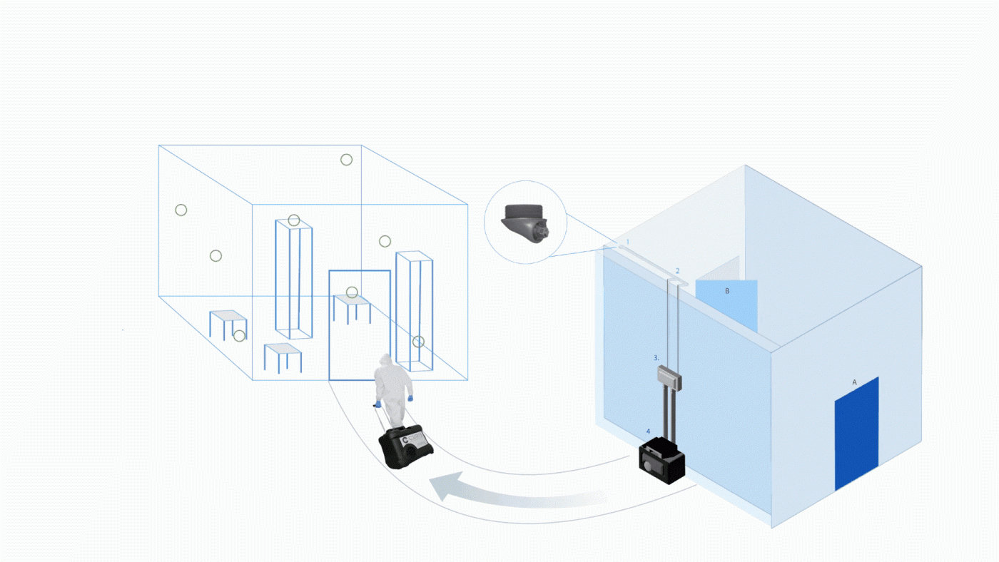 Flexible biodecontamination integration—from portable system coordination to fully automated facility infrastructure.